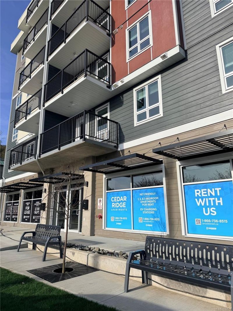 AVAILABLE NOW. Come and see Downtown Campbell River's newest building - CEDAR RIDGE APARTMENTS, with 65 rental suites situated over ~3,700 sq.ft. of ground floor commercial space fronting Cedar St at the intersection of 10th Ave and Cedar St. Construction has just completed and fixturing can start any time. Comprising four units of 1000 sqft, 954 sqft, 856 sqft + 899 sqft, units 100 and 101 can be combined into one ~1,954 sq.ft. unit, while units 103 and 104 could be combined for ~1,750 sq.t. Across from Community Centre. Plenty of parking in the area. Can be shown during business hours.