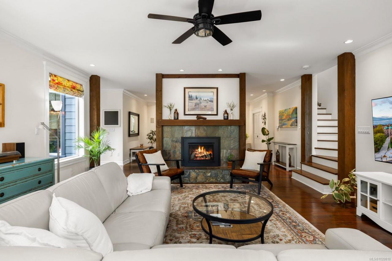 The moment you cross the bridge through the gates, you'll feel instantly at ease. Life on River Road is as much about the setting as the home. The main level boasts a cook's kitchen, spacious living and dining areas anchored by a striking stone fireplace, reclaimed floors, and French doors opening to a covered patio and outdoor fireplace. Upstairs offers four bedrooms plus an office, including a spacious primary with walk-in closet, gas fireplace, ensuite, and private deck. Above the double garage, a studio suite is ideal for guests. Step out your front door, passing the shared pond teaming with nature to access forested trails leading toward...read more