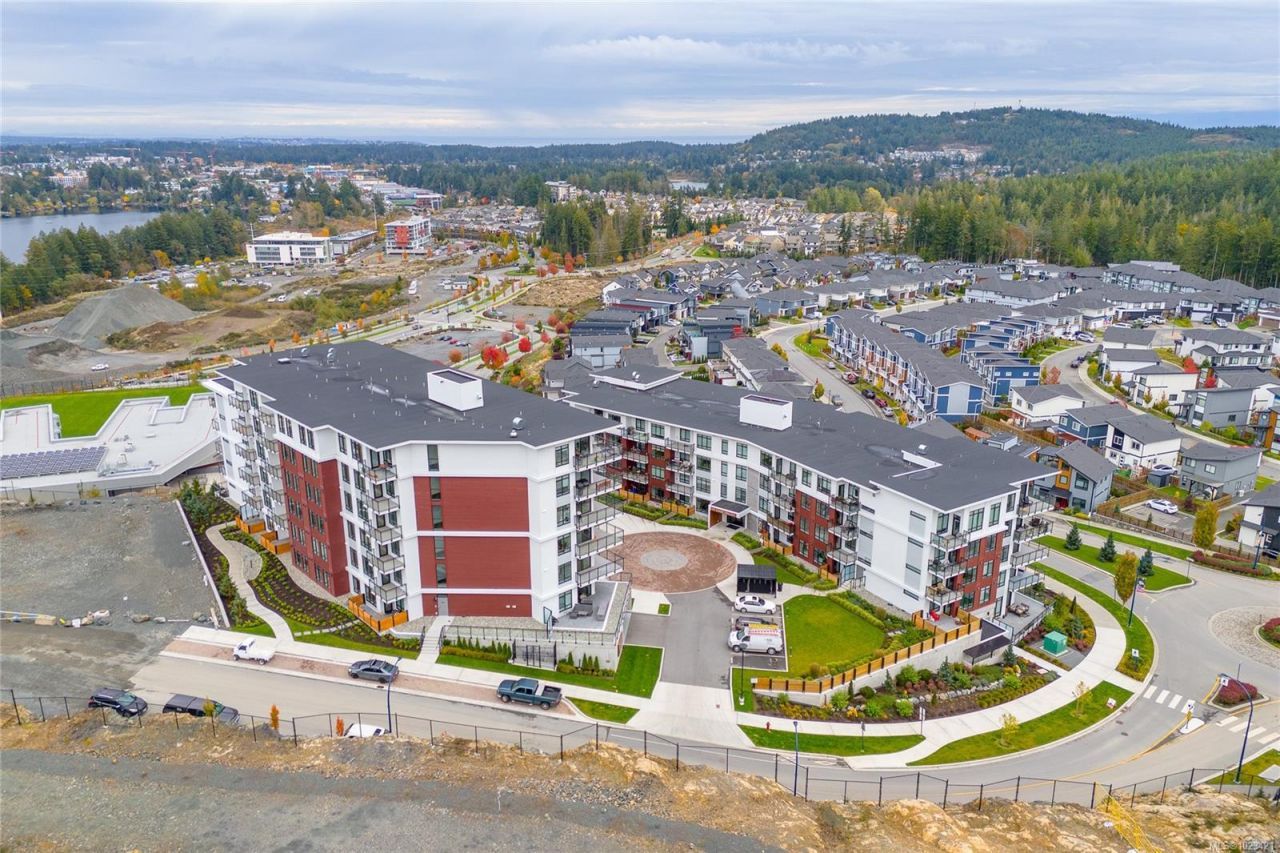 Welcome to Solaris at Westhills, a Built Green Certified community offering modern living in a vibrant, walkable neighbourhood with beautiful lake views. This spacious 2-bed plus den, 2-bath condo features 9' ceilings & motorized blinds for comfort. The gourmet kitchen includes gas appliances, island, pantry, stone counters, tiled backsplash, and matte black hardware. The primary suite has a walk-in closet, custom shelving, while the den works as a home office or guest room. Walk-in laundry w/ full-size washer and dryer. Smart home features control climate, lighting, and security, plus A/C and baseboard heat. Secure building with visitor...read more