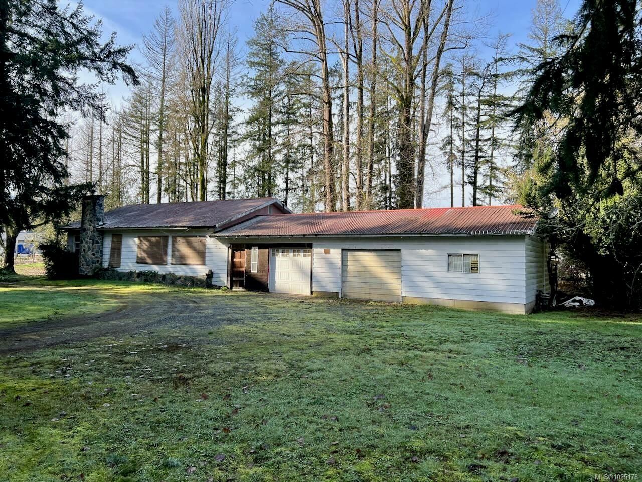 Situated on 2.3 acres, this property features a small watercourse running through the land and a two-bedroom home around 1300 ft2 with a two-car, approximately 1,000 FT2 garage. While the house and garage requires some TLC, it offers an excellent opportunity for buyers looking to build equity through their own improvements. Small shop on back of property around 150 ft2. The land is gated and fenced, backing onto a farm and conveniently located close to the airport, with easy highway access for commuting. The home, originally built in the 1950s, showcases a striking exterior rock chimney that serves as a strong architectural anchor.Renovations...read more