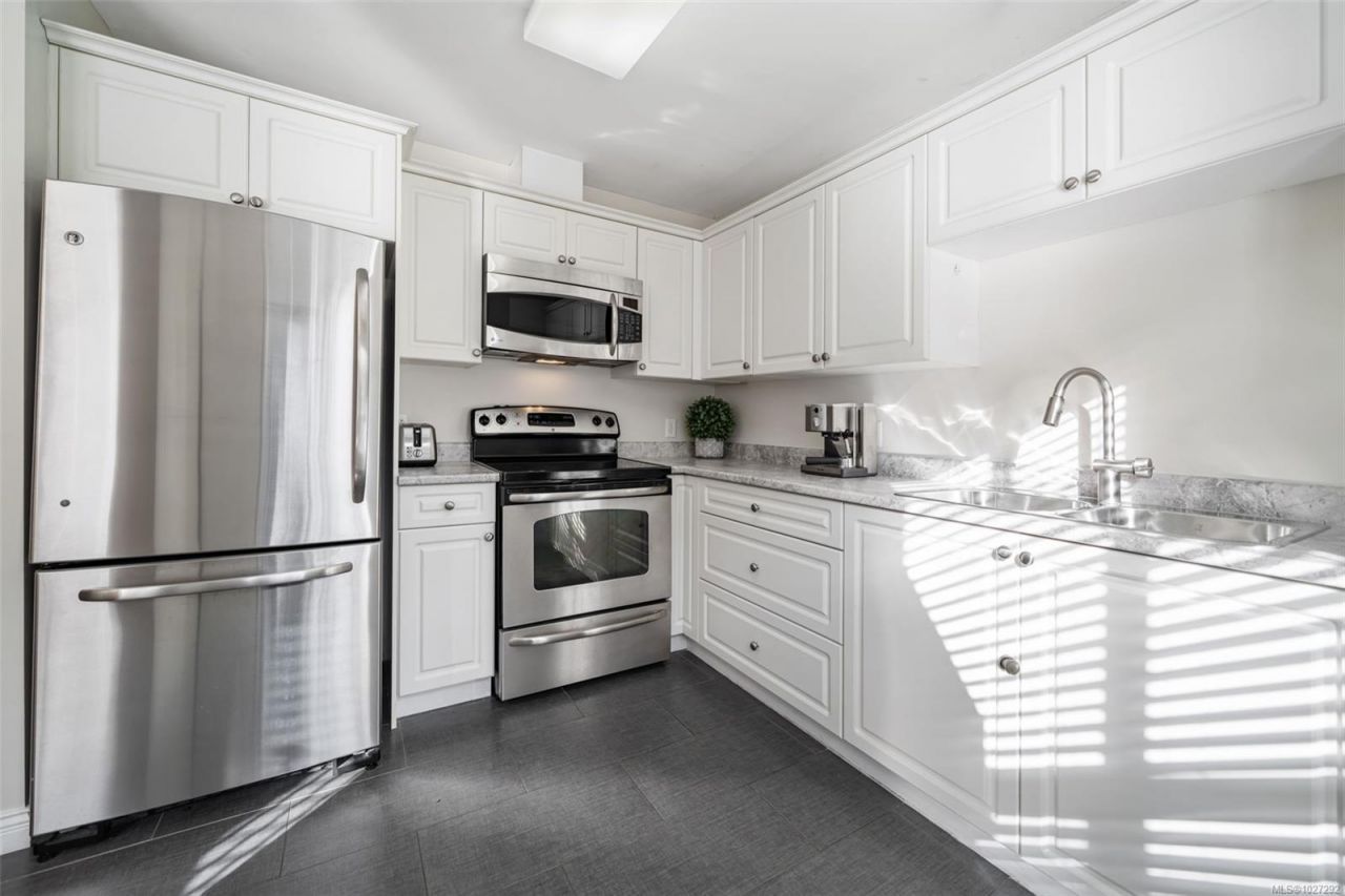Bathed in sunlight & tucked at the back of the building, this corner suite feels like home. Offering over 1000sqft of well-designed living space, this 2 bed, 2 full bath condo is steps to Hillside in one of Victoria's most connected neighbourhoods. The bright living & dining area features a gas FP & access to a sunny private balcony. The refreshed kitchen offers new countertops, double sink, SS appliances & ample counter/cabinet space. The layout provides excellent separation between bedrooms. The spacious primary suite easily fits a king bed & includes a walk-through closet & full ensuite while the large 2nd bedroom has a cheater ensuite...read more