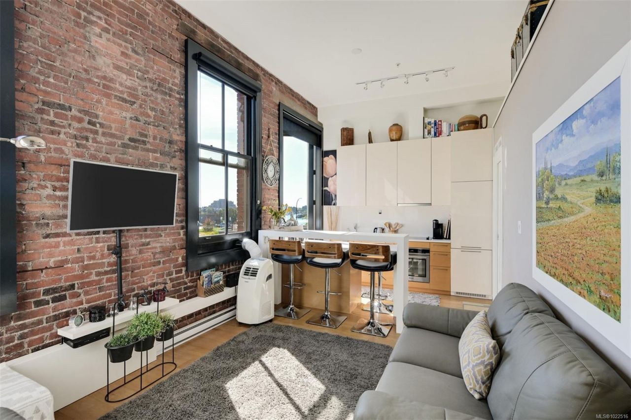 Experience urban living in the iconic Janion building, where heritage charm meets modern style. This bright SOUTH-FACING 2-bedroom features original exposed brick, oversized windows, and views of the bustling City, and Inner Harbour. Designed with efficiency in mind, it offers a built-in wall bed, integrated storage, engineered oak flooring, quartz countertops, a hidden-drawer dishwasher, refrigerator, freezer, and in-suite washer & dryer. Enjoy in-floor heating in the bathroom for added comfort. The Janion boasts premier amenities: rooftop terrace with BBQ and kitchen, fitness centre, conference room, bike/kayak storage, and internal beach...read more