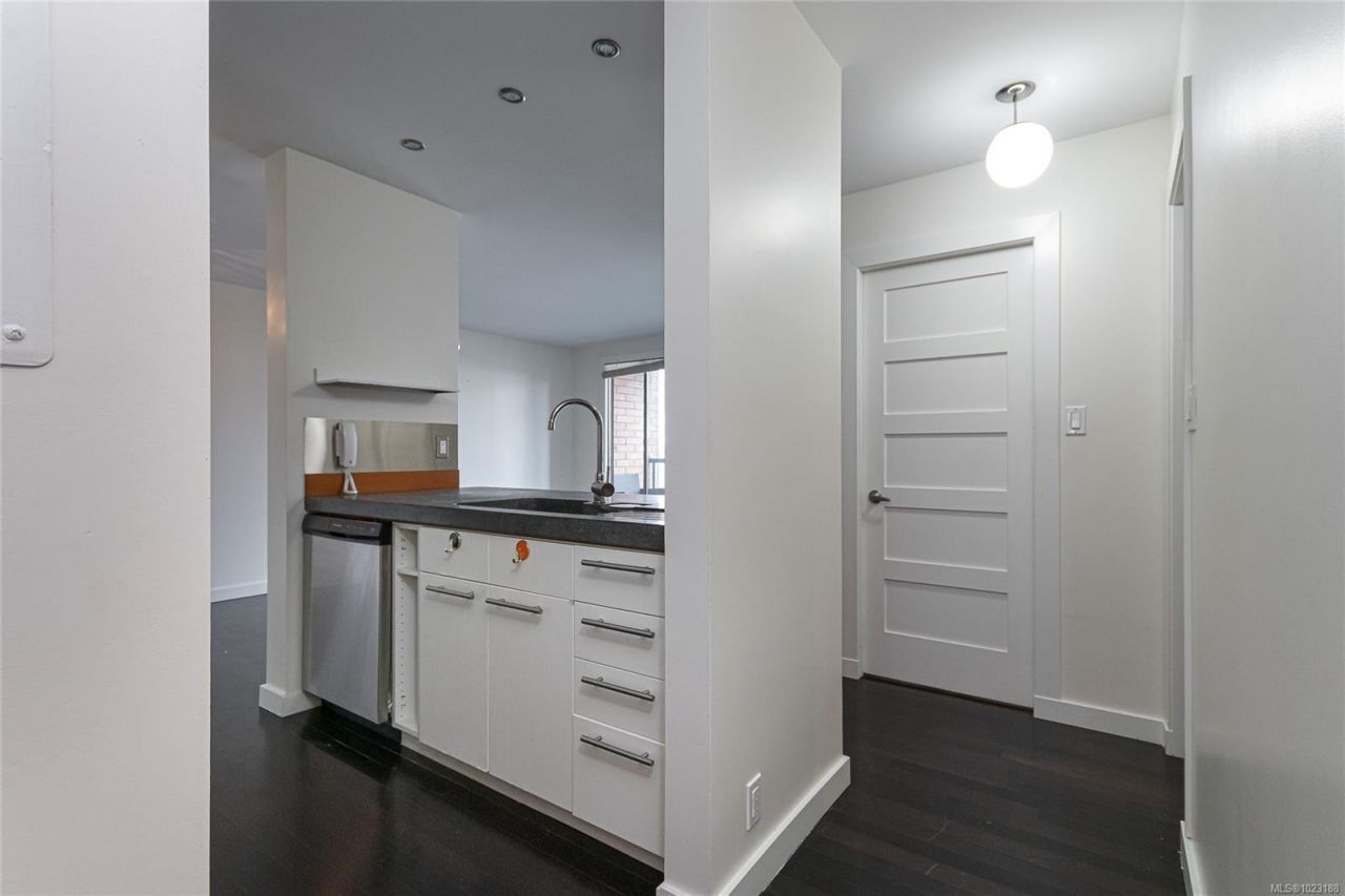Located on the 10th floor, this one-bedroom downtown condo offers city and mountain views from a desirable north-facing exposure. The unit features a functional layout with generous built-in storage and a kitchen equipped with concrete countertops, stainless steel appliances, and modern fixtures?ready for a refresh to truly make it your own. With some TLC, this home presents an excellent opportunity to add value and customize to your taste. The steel-and-concrete Sandpiper is a well-managed, non-smoking building, ideally situated within walking distance of downtown, Market on Yates, London Drugs, and all amenities. Building amenities include...read more