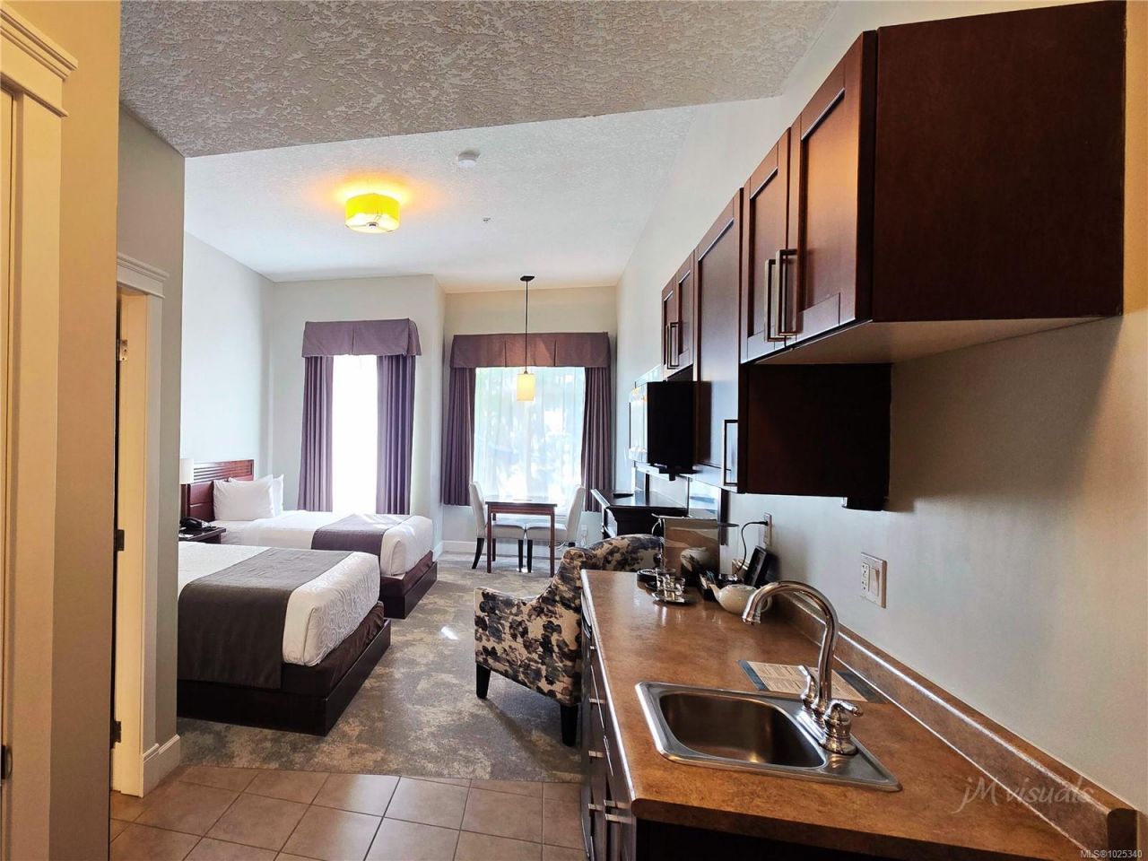 Experience West Coast charm and refined comfort in this luxurious main-floor corner suite at the Old House Hotel & Spa in Courtenay. This is a rare chance to own ALL 4 QUARTERS of the same unit - enjoy up to 3 weeks' personal use monthly, with the rest earning income via professional hotel management. Vaulted ceilings and expansive windows create a bright, airy retreat, fully furnished with upscale finishes. Relax by the fireplace, prepare light meals in the petite kitchen, and unwind in the spa inspired bath with walk in shower and separate tub. Resort amenities include a heated pool, hot tub, Ohspa, fitness gym, EV charging, and lush grounds....read more