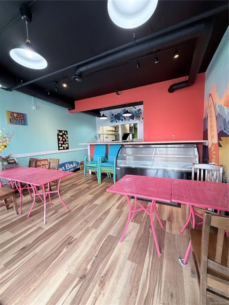 This exceptional ~712 sq ft ground-floor retail kitchen unit is ideally located in the heart of dynamic downtown Duncan. Perfect for restaurants, cafés, bakeries, food service operators, this bright and functional commercial space offers excellent street-level visibility and high foot traffic. The unit features a commercial hood and two walk-in freezers, making it move-in ready for food-related operations. Benefiting from DTC (Downtown Comprehensive) zoning, this property supports a broad range of permitted commercial uses including restaurants, retail, personal services, and more. All measurements are approximate and should be verified...read more