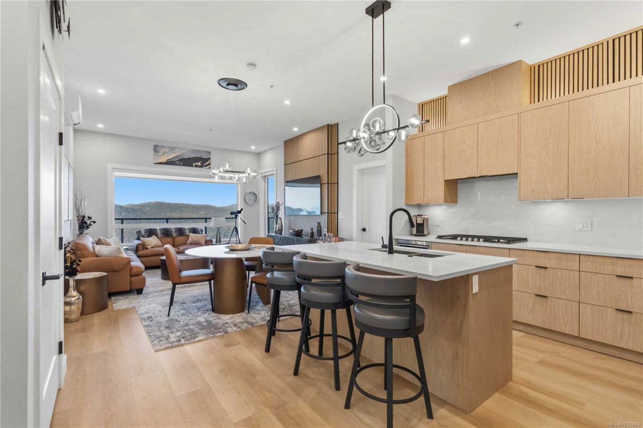 Beautiful TOP FLOOR, 2 bed, 2 bath+den home offering approx. 1,123 sf of thoughtfully designed living space with stunning ocean, mountain & lake views you won't find anywhere else! Located on stunning Bear Mountain, this home features refined finishes and a big patio with NG BBQ outlet. Entering the unit you'll instantly notice the stunning view, 10' ceilings and large open concept living space with beautiful custom wood paneling drawing your eyes to the living room feature wall, this unit also boasts upgraded lighting & ceiling fans, and UV protective window film, and a den with custom cabinetry & countertops, both bedrooms also include...read more