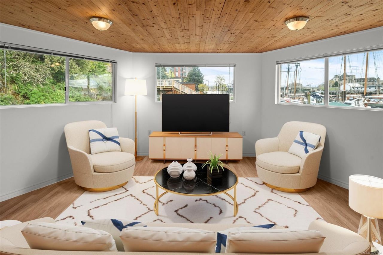 Welcome to rare waterfront float home living in the beautiful Victoria harbour. This 3 bedroom, 2 bathroom vessel offers the opportunity to enjoy Victoria inner harbour living at a fraction of the cost. The first level enters into a spacious foyer, with a spacious primary bedroom equipped with a built-in stone fireplace & 2-piece ensuite bathroom. The first level also offers an office space, laundry & storage room, as well as a second bedroom. The well-appointed main level includes a gourmet kitchen w/stunning inner harbour views, cozy living room, dining area, third bedroom & 4-piece bathroom. With every window offering water views, you'll...read more