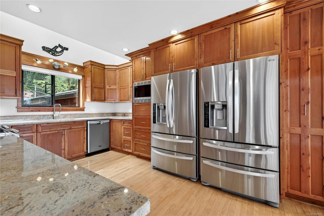 Exceptional value for a 5-acre ocean-view property offering over 3,000 sq ft of living space. This 5-bed, 3-bath home features vaulted ceilings, skylights, and large windows for a bright, open feel. Spacious kitchen with granite counters and double fridges. Over 500 sq ft of decking plus sunroom for year-round use. Lower level offers excellent potential for an income or in-law suite. Usable acreage includes fenced gardens, raised beds, fruit trees, berries, poultry coop, two ponds, and a 4,000-gallon irrigation system. Home theatre, workshop, double garage, and metal roof add value. Private trails throughout the property. Selective tree...read more