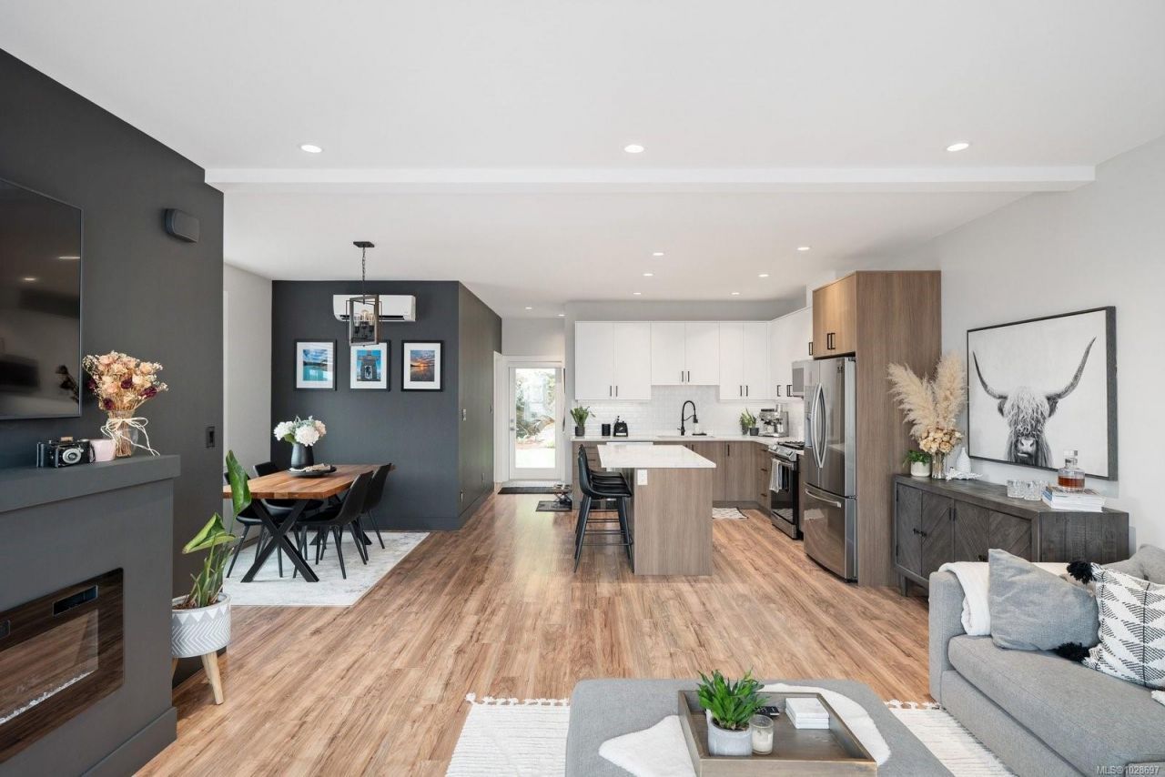 Pleased to present this luxurious, modern West Coast home situated in Sooke's seaside community. Set high on the hill, this half-duplex boasts spectacular Ocean VIEWS over the Strait of Juan De Fuca. Feel at ease the moment you step inside the 6Bed, 4Bath, 2635 sq/ft home. Attention to detail throughout will impress even the most discerning buyer. Abundant natural light fills the open-concept living and dining space, with easy access to the private, fenced rear yard?perfect for pets and kids. The stunning chef's kitchen features Quartz counters, SS apps, Gas range & a large island. Upstairs find the primary suite w/a large walk-in, spa-inspired...read more