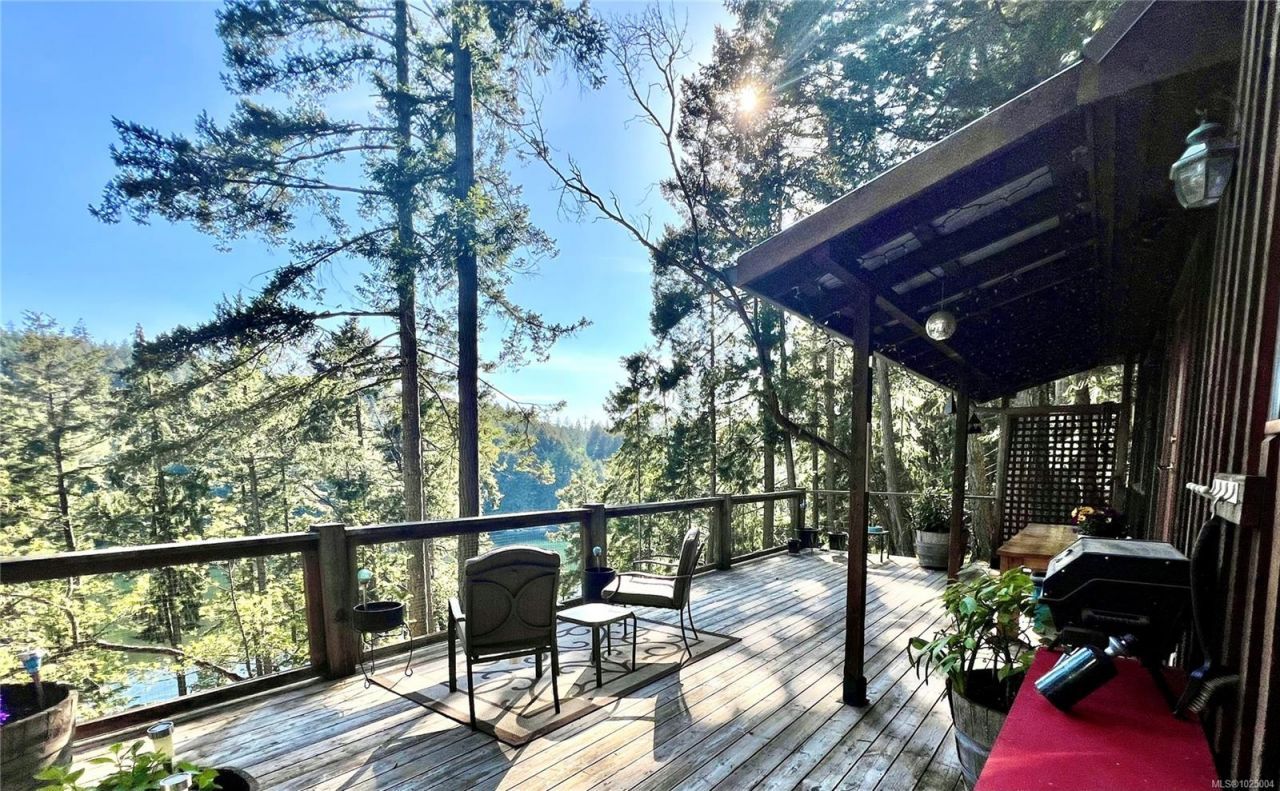 Nestled on a private, treed .69-acre lot, this distinctive island retreat offers an elevated coastal lifestyle above Dodd Narrows. Designed to connect with nature, the 1,256 sq. ft. residence captures sweeping ocean views as you watch the orcas dance in the currents from the comfort of your home. Featuring 2 bedrooms and 2 bathrooms, plus a loft and landing ideal for guest space or a home office. A partially finished addition provides exciting opportunity for a studio, or more room for guests. Reclaimed hardwood floors, vaulted ceilings, and custom wood detailing add warmth and character throughout. The expansive deck enjoys south facing...read more
