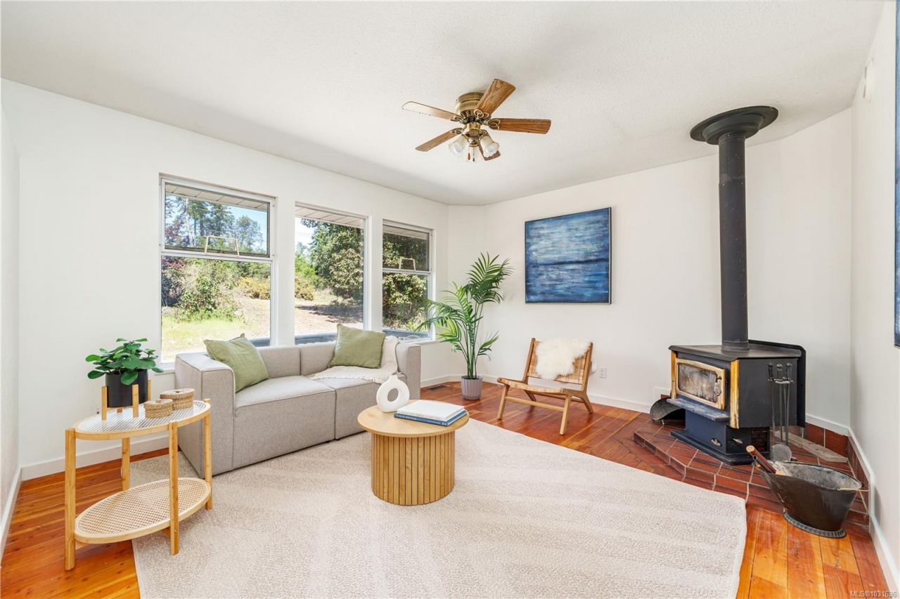 Set on a private 1-acre property in the peaceful community of Nanoose Bay, this charming one-level home offers comfort, functionality, and space to enjoy. Featuring 3 bedrooms and 2 full bathrooms across 1,200 sq ft of finished living space, the home showcases a bright, practical layout with updated finishes, stone countertops, and newer appliances.Stay comfortable year-round with a high-efficiency furnace, heat pump, and A/C, while the WETT-certified wood stove adds warmth and character. The detached garage/workshop with its own power provides excellent flexibility for hobbies, storage, or projects.Additional highlights include a durable...read more