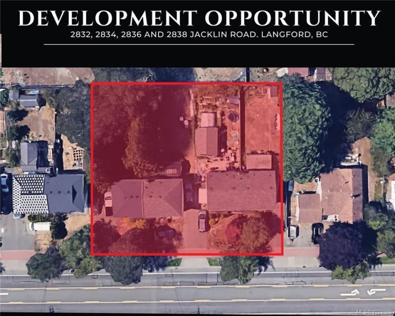 Prime Land Assembly Opportunity in Downtown Langford. An exceptional development opportunity awaits at 2832, 2834, 2836, & 2838 Jacklin Road, located in the heart of Langford's city centre. This high-density site, currently zoned R2, is part of the sought-after City Centre Pedestrian (CCP) Zone, allowing potential for a transformative mixed-use project high rise, with commercial space on the first floor. With city-approved projects already underway and successfully completed nearby, this location is primed for high-rise development, offering immense value to developers looking to make a mark in one of the region's highest-demand areas....read more