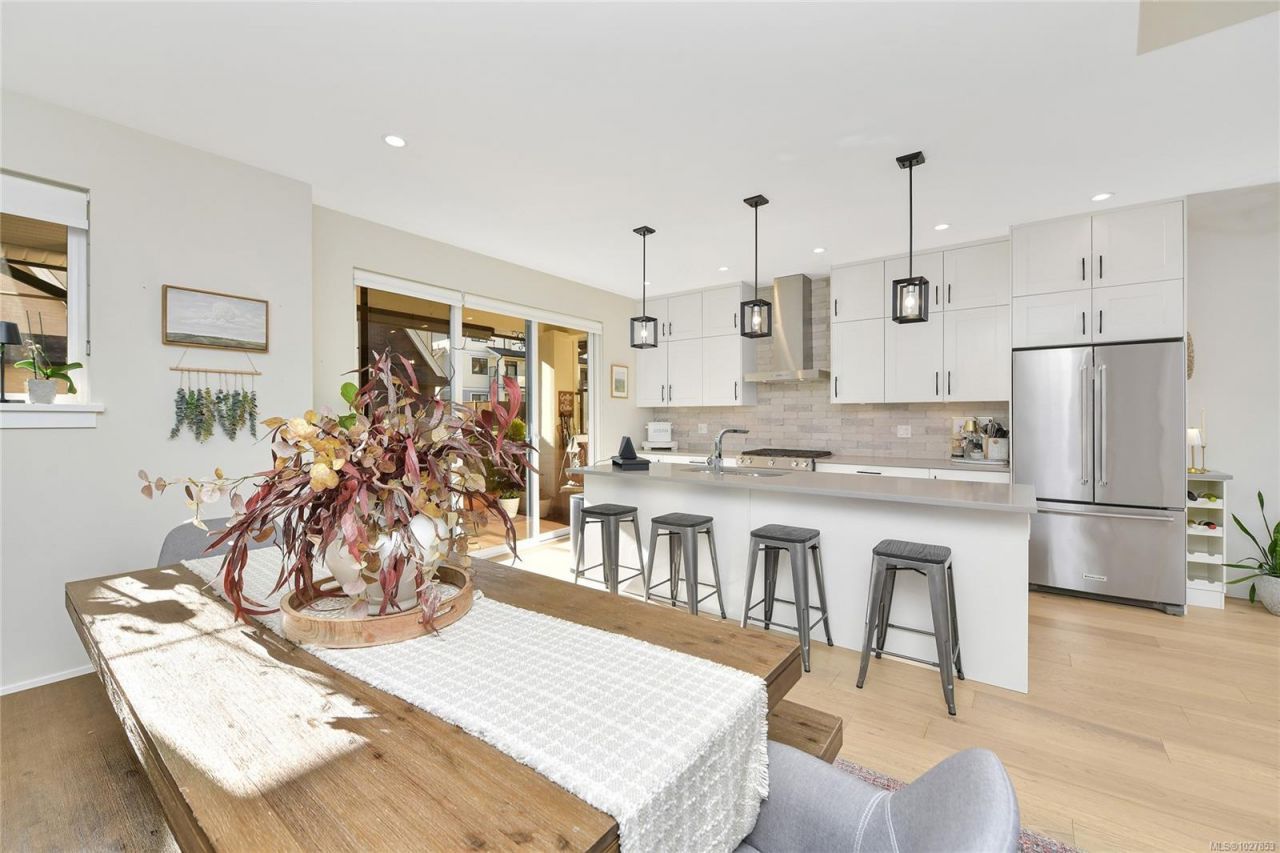 Welcome to The Brownstones at Langford Lake in sought-after Kettle Creek! This beautifully appointed 4BR, 3BA townhome features an open-concept main floor with a spacious dining area, chef-inspired kitchen, quartz counters, SS appliances, gas range, a large island, and a comfortable living room with a cozy gas fireplace. Step out to the South facing balcony with a gas connection ready for family BBQ. Upstairs offers a spacious primary with a 12.5-ft vaulted ceiling, walk-through closet, and double-sink ensuite with a large walk-in shower, two additional generous bedrooms and a full bathroom. Downstairs features a versatile bedroom or office/TV...read more
