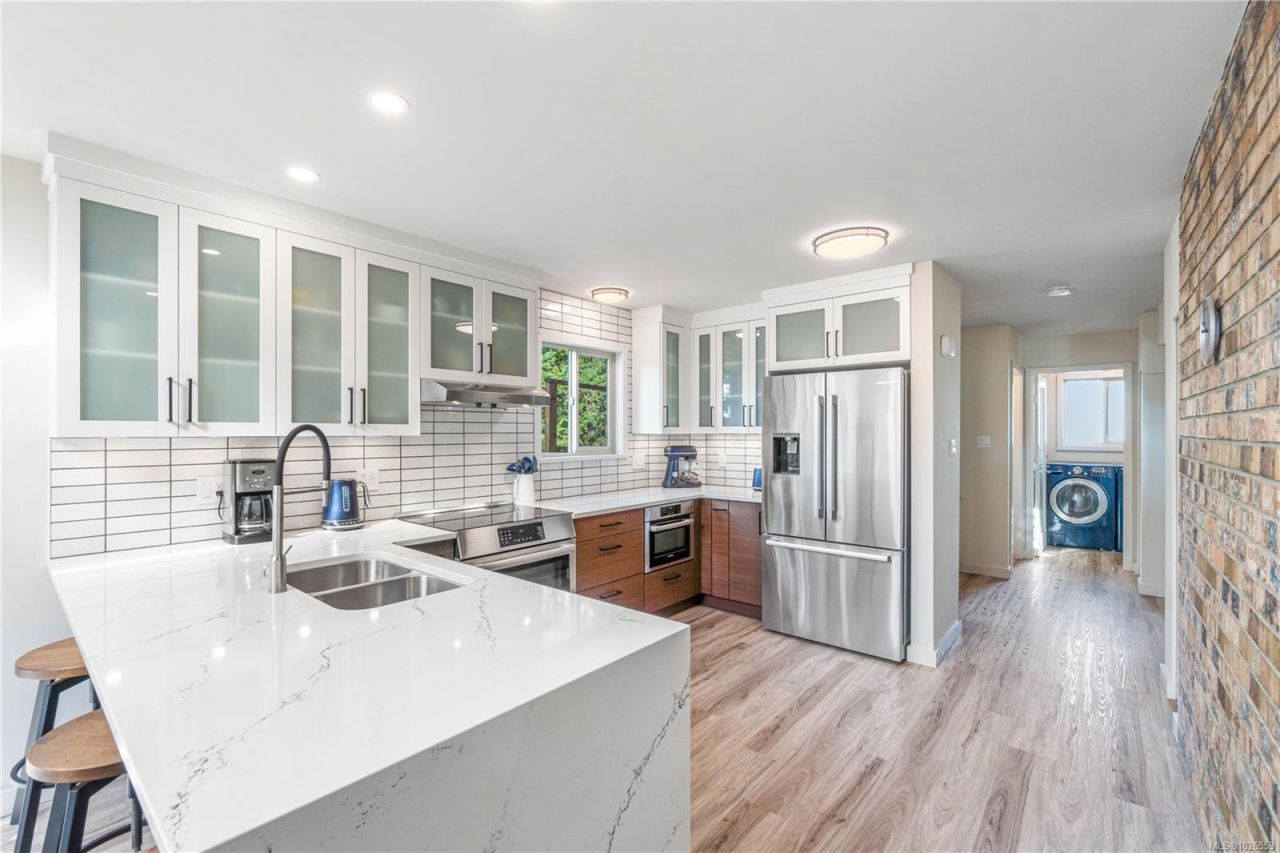 Experience this custom home with WOW factor in person. Soaring vaulted ceilings, expansive windows & sliding glass doors flooding this home with light & showcasing forest & mountain views. Enjoy privacy & set well back from the Rd. Located in Nanaimo's treasured Sherwood Forest, 1 min from Linley Valley Park trails & close to Departure Bay Beach. Lovingly maintained & professionally renovated. Custom Merritt kitchen is a true showpiece featuring waterfall Cambria quartz counters, Bosch Stainless appliances & coffee bar. Beautifully renovated main bathroom with soaker tub. New flooring, paint, updated plumbing, electrical & lighting. Stunning...read more