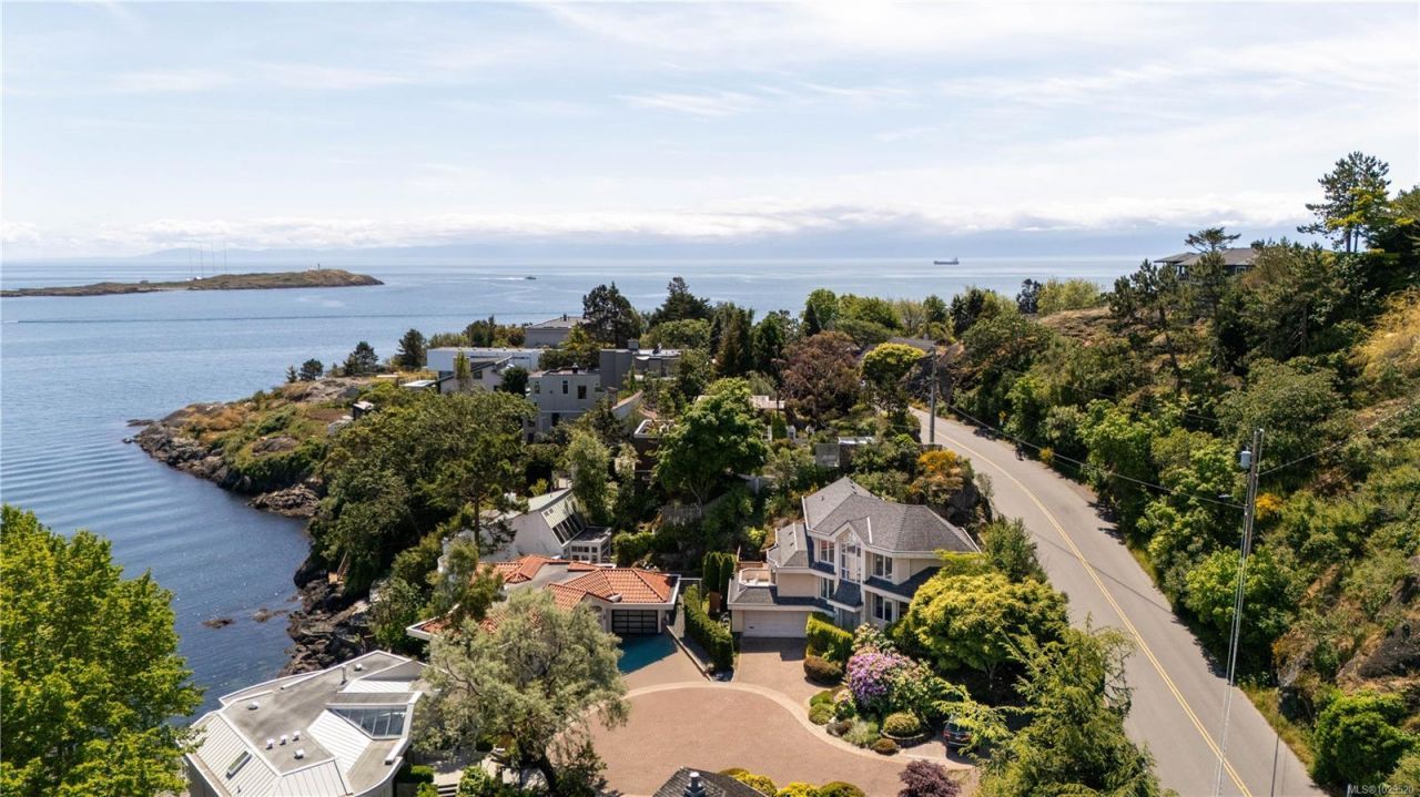 Welcome to 335 King George Terrace, a tranquil coastal retreat in Oak Bay's prestigious Gonzales neighbourhood. This 3-bedroom, 3-bathroom residence offers nearly 3,000 sq. ft. of well-designed living space, with panoramic ocean views from every level. The main floor features a bright, open-concept living and dining area, a well-appointed kitchen, and a sun-filled primary suite complete with a walk-in closet and ensuite. Multiple patios create seamless indoor-outdoor living, perfect for entertaining. Upstairs, vaulted ceilings enhance a spacious media room, along with two additional bedrooms and direct access to expansive outdoor areas. A...read more