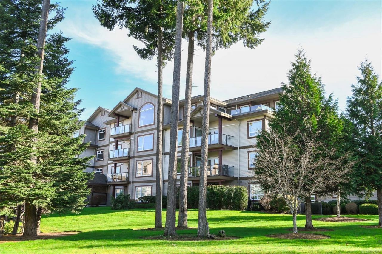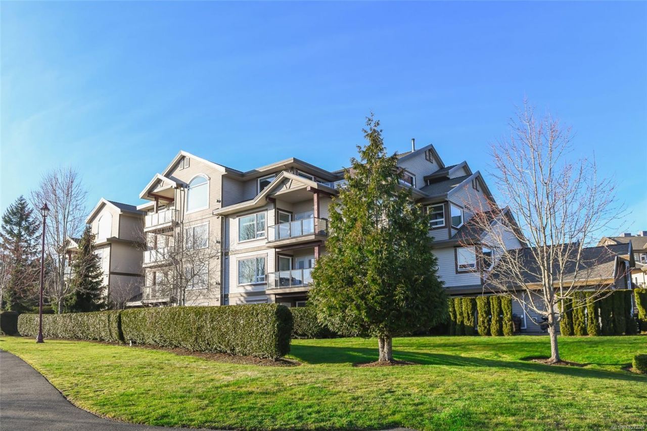 A beautiful place to call home at Crown Isle Golf Course. This stunning penthouse-level 2-bedroom + den, 2-bathroom condo offers refined West Coast living with lovely architectural detail. Soaring 12-ft cathedral and tray ceilings with skylights create a bright, elegant atmosphere. The open-concept design features a gourmet kitchen with granite counters, dark cabinetry, and a spacious island flowing into the dining and living areas. Two natural gas fireplaces provide warmth and ambiance. The generous primary suite boasts a luxurious ensuite with tiled shower and double sinks. Step onto the large north-facing deck overlooking the beautifully...read more