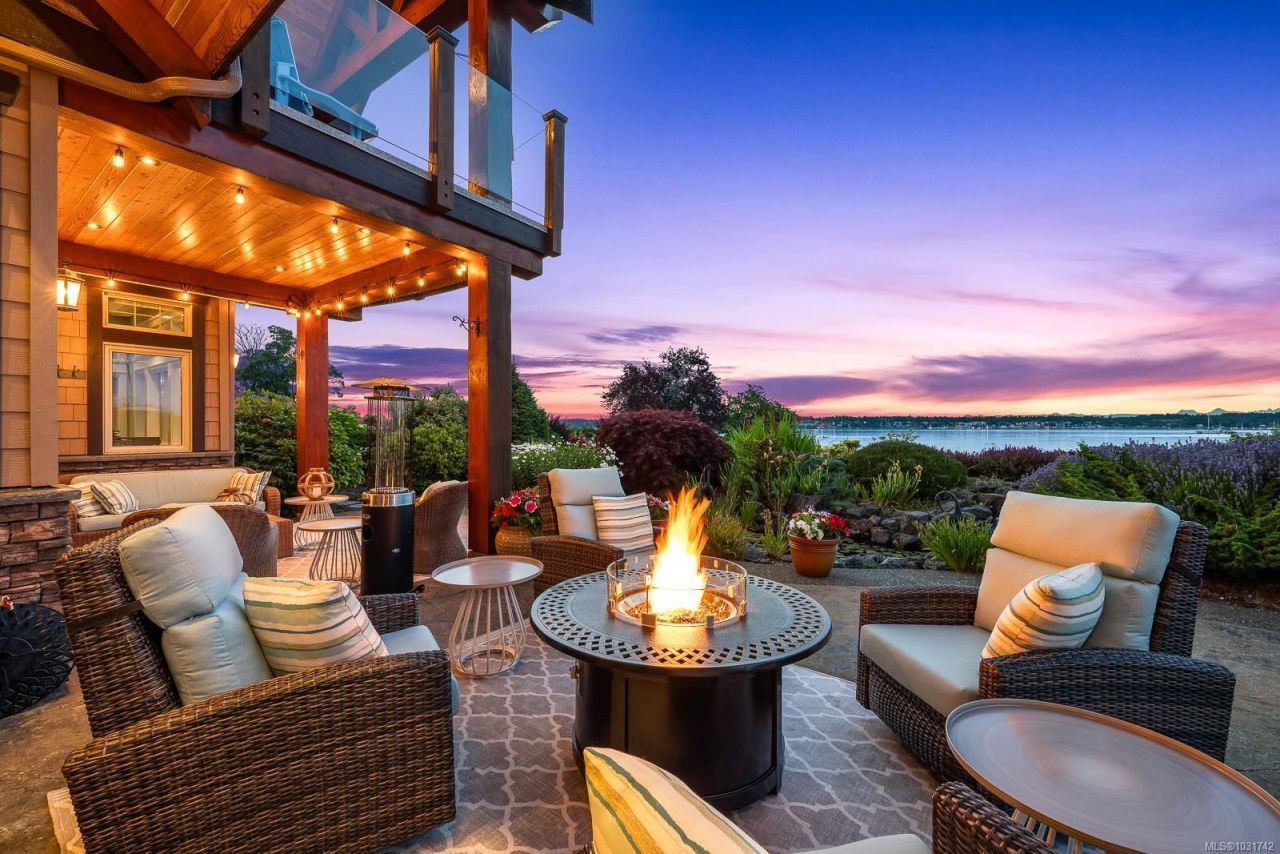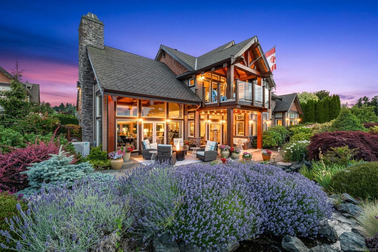 Exceptional semi-waterfront custom timber frame home offers breathtaking ocean & mountain views. With over 4,800 sqft of beautifully designed living space plus carriage home, this architectural gem blends west coast elegance with exceptional craftsmanship. The main residence features 4 beds & 4 baths, including a luxurious primary suite on the main. Soaring 22' vaulted ceilings in the great room frame the ocean views, while the stunning kitchen is sure to impress. The grand entry welcomes you with natural light & entertaining is effortless with a designated theater & games room complete with built-in bar. Expansive front & rear patios are...read more