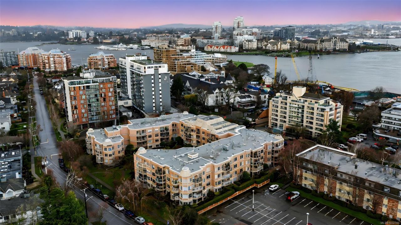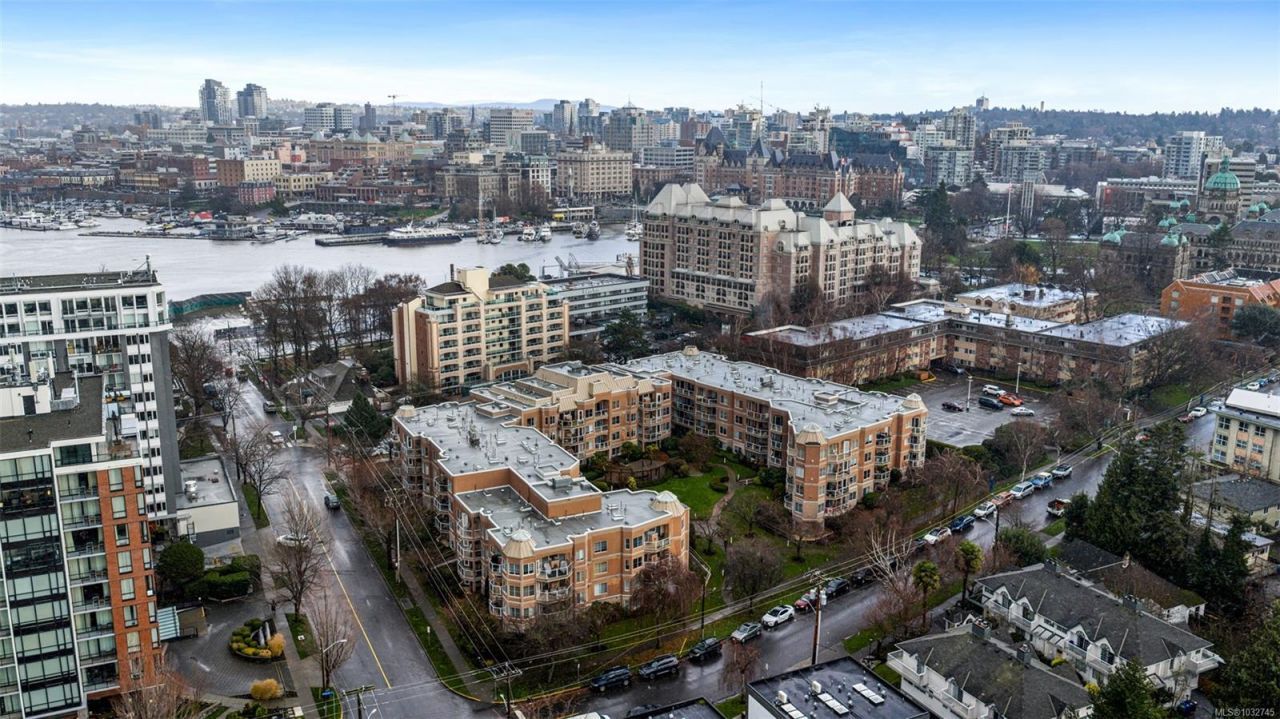 A Fabulous 1 Bedroom plus Den, 1.5 bath Condo with Garden Views and southerly sunny exposure - James Bay living at its best. This attractive condo faces the quiet side of complex and boasts a spacious, open floor plan with good size kitchen overlooking dining area viewing the wonderful mature flowering garden. The den offers great additional flexible space for a home office, or an overnight guest. The living area has a gas fireplace and has access to a large private balcony for rest or relaxation. The primary suite with walk in closet and ensuite offers opportunity for king size bed and lounge chairs for a reading nook. Step out your front...read more