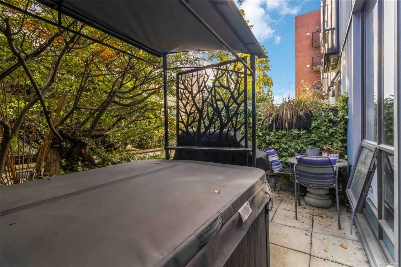 A rare opportunity to secure this downtown waterfront gem with its own hot tub! This ground-floor Mermaid Wharf condo offers truly elevated urban living, featuring direct patio access to downtown without using interior hallways. This stylish retreat showcases an open-concept layout with polished concrete floors, quartz countertops, slate appliances, and a cozy gas fireplace. Thoughtful upgrades include motorized blackout blinds, a Murphy bed frame, and a new LG WashTower. Step out to your private patio with direct access to the David Foster Harbour Pathway, seamlessly connecting you to downtown and the Inner Harbour waterfront. Enjoy shared...read more