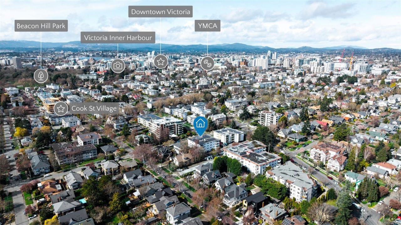 Ideally located in the heart of Fairfield, you're just steps to Cook Street Village and a short walk to the scenic Dallas Road waterfront. Welcome to this bright and spacious top-floor southwest corner unit offering 1,133 sq. ft. of comfortable living space with beautiful mountain and city views. This well-designed condo features 2 bedrooms and 1.5 bathrooms, generous room sizes, and plenty of natural light throughout. The enclosed west-facing balcony is the perfect place to relax and enjoy the sunset. Enjoy one of Victoria's most sought-after neighbourhoods with a Walk Score of 93 making daily errands and recreation incredibly convenient....read more