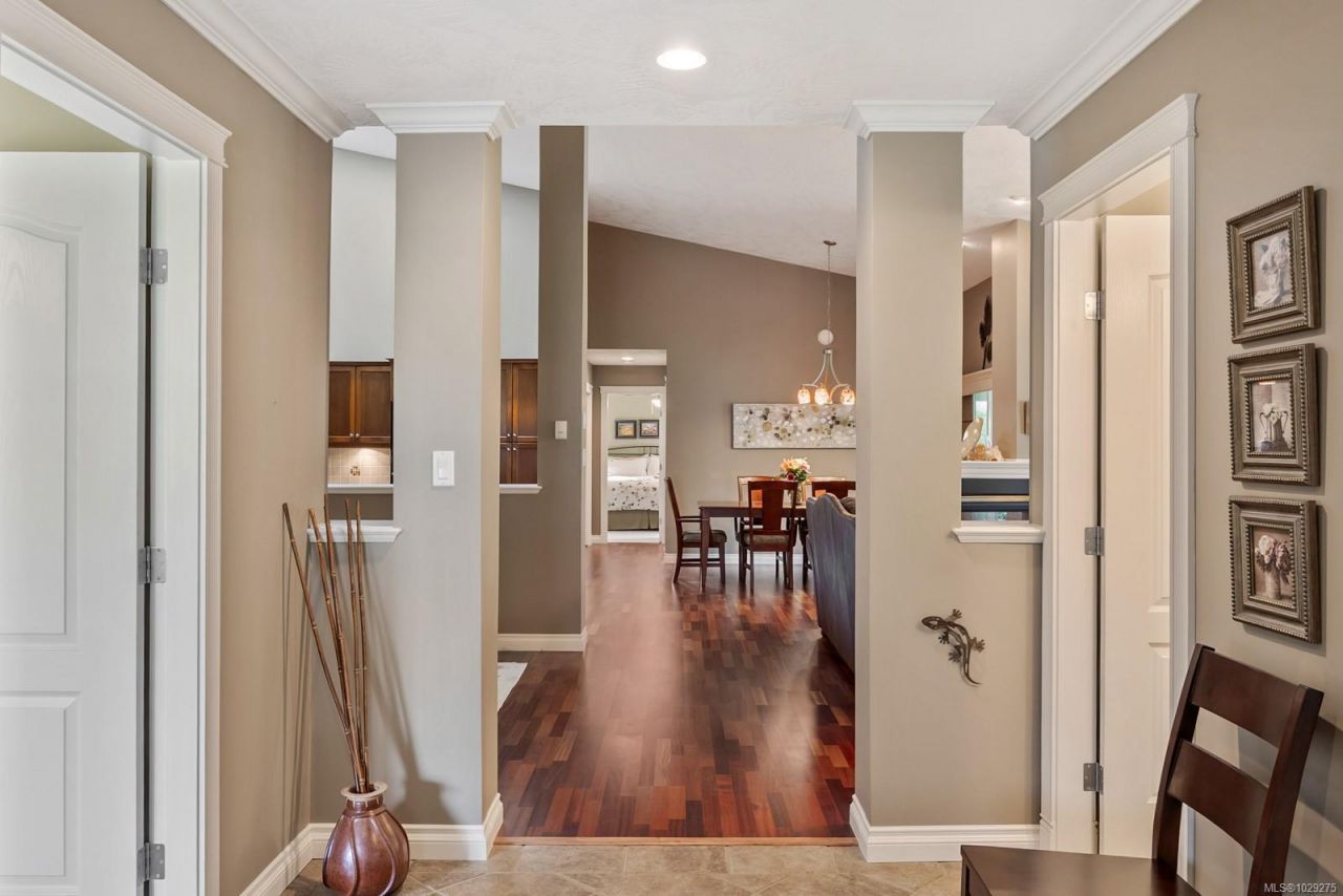 One of the largest units in the sought-after River Glen community, set along the edge of the complex for added quiet and privacy. Backing onto forest and river, it offers a well-defined sense of space and a strong balance of nature and convenience, just a short walk to downtown Courtenay, shops, restaurants, & trails. Inside, vaulted ceilings, skylights, and large windows bring in natural light and a warm, comfortable feel. The open layout includes a spacious kitchen, dining area, two living spaces, and a 3-sided gas fireplace. The kitchen connects easily to the main living areas, with sliding doors leading to a covered patio. Two large bedrooms...read more