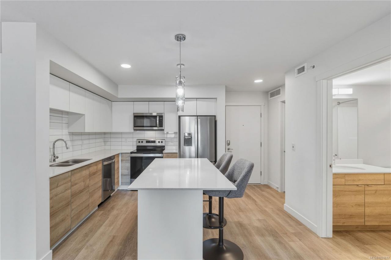 Welcome to this modern top-floor 1-bedroom condo in a quiet, well-situated building just 4 years young. Tucked at the back of the complex, this home offers peace and privacy while still being close to everything. Inside, you'll find a bright, open layout featuring a spacious living room and a stylish kitchen complete with stainless steel appliances, quartz countertops, and a functional island. Step out onto your covered deck to enjoy year-round outdoor space. The bedroom is generously sized and located beside the 4-piece bathroom. Enjoy the convenience of your own hot water tank, plus an in-suite laundry room. This home includes 1 underground...read more