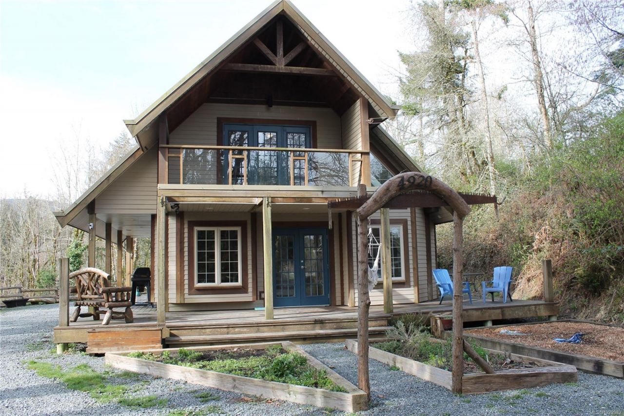 1.5 Acre Hobby Farm At The End Of The Road. This West Coast style family home built in 2005, is located at the end of a gravel road, surrounded by forest & next to Glenora Creek. The quality 2/3 bedroom and 2 bathroom home has hardwood floors, heated floors and a wrap around deck. The kitchen has hickory cabinets, granite countertops and stainless steel appliances. The open living area has a cozy fireplace & cathedral ceilings. The upstairs has a big primary bedroom, 3 piece bathroom & lounge area, with doors out to the top deck. Outside you will find lots of parking including for recreational vehicles, a workshop with power & water, raised...read more