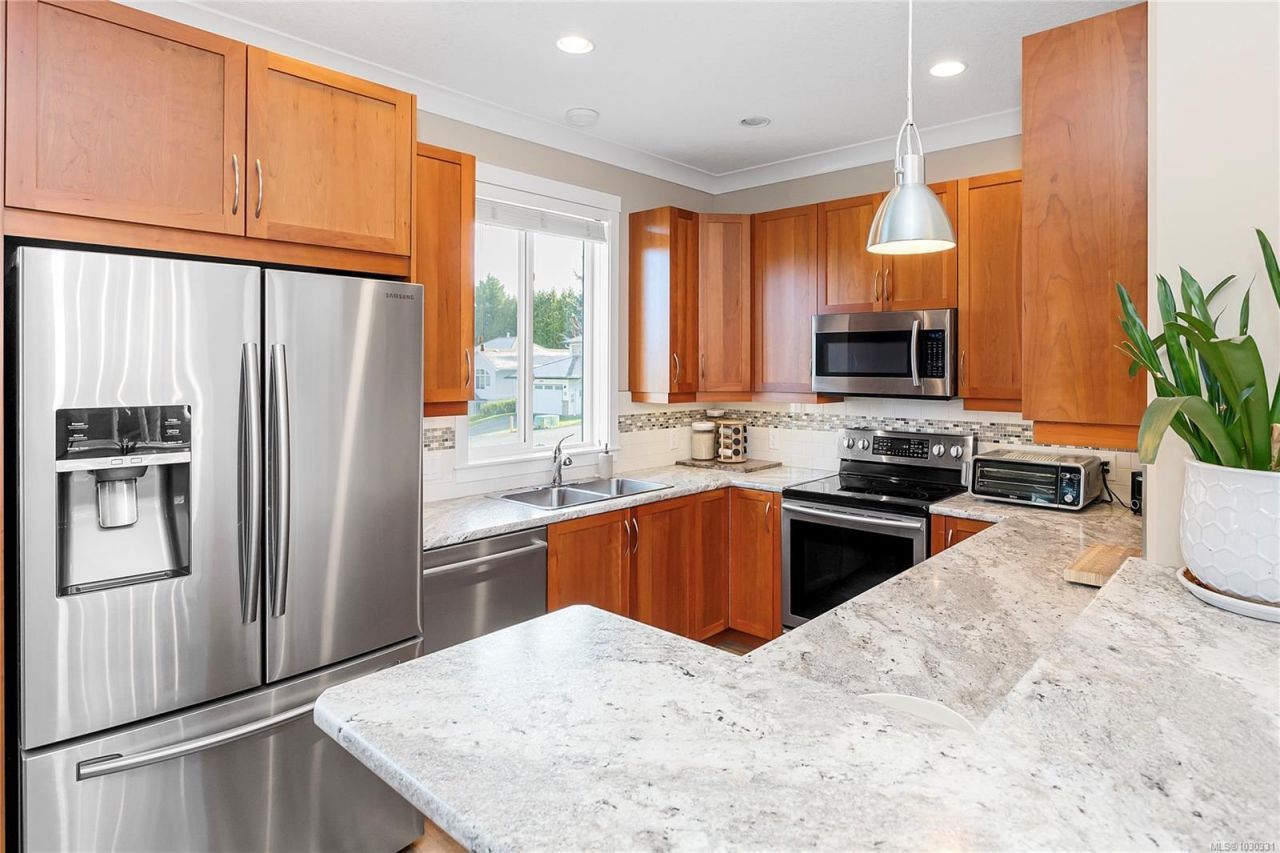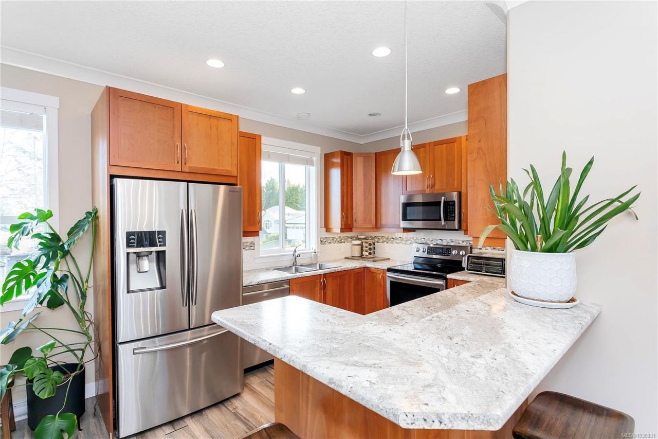 This beautiful end-unit townhome in North Nanaimo is perfect for first time buyers, growing families or empty nesters! Backing onto a quiet green space and a creek, this home benefits from a large, super private, ground level patio. Back inside you'll find that this 2016 build has a flexible layout that could work for almost anybody. Two bedrooms on the top floor, including the primary with a walk out, mountain-view balcony, as well as a 4-pc bathroom. The Main floor is naturally bright with big windows and flows seamlessly from the living room to the dining area and into the kitchen featuring cherry cabinets, ample storage and slide out...read more
