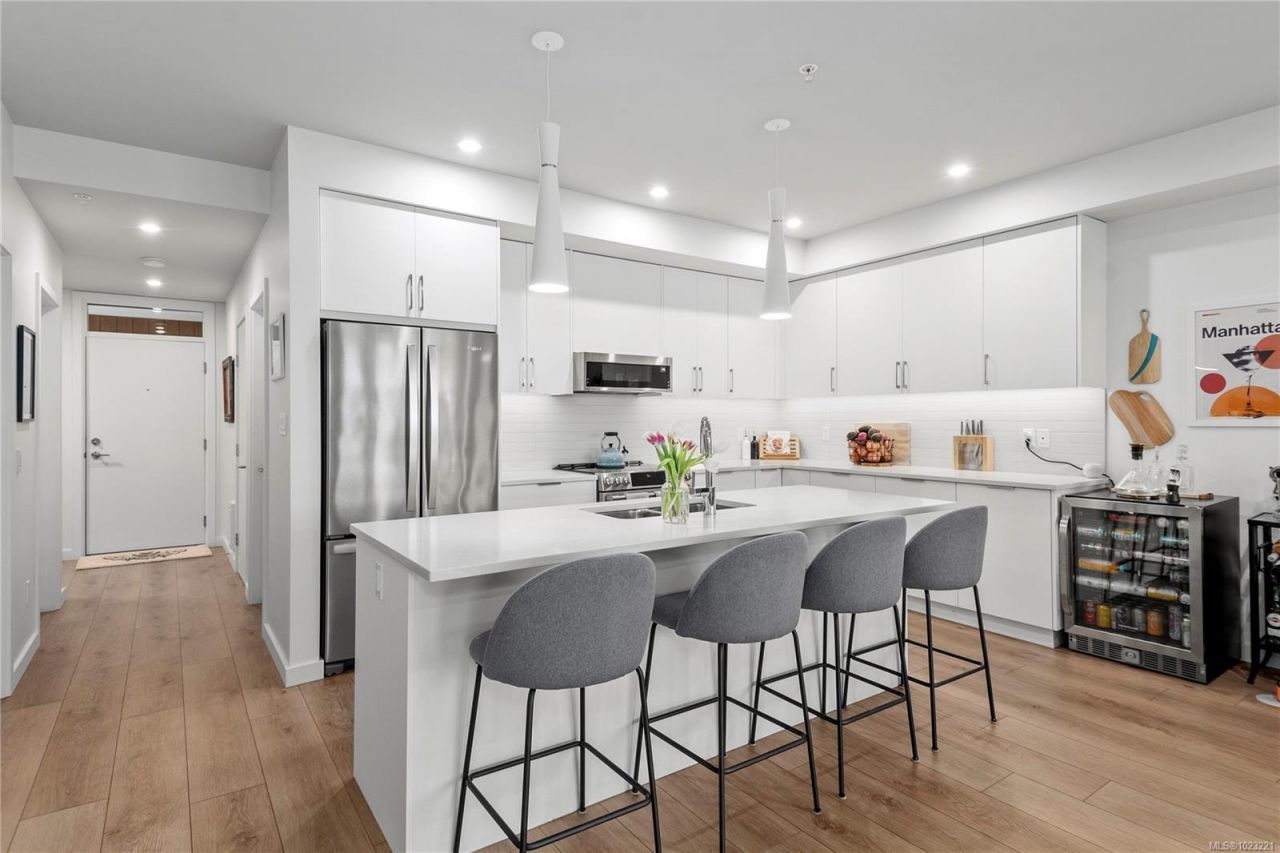 This stunning fifth-floor residence delivers unobstructed ocean views and an undeniable wow factor. Cruise ships, glowing sunrises, and dramatic winter storms create a constantly changing backdrop from the main living areas. The open-concept design is tailored for refined modern living, featuring a statement oversized island, quartz countertops, contemporary finishes, and soaring 9' ceilings. A spacious view balcony extends the living space outdoors?perfect for relaxing or entertaining.Luxury details include stainless steel appliances, pull-out shelving in all lower cabinets, a heat pump for year-round comfort, and remote blinds in both the...read more