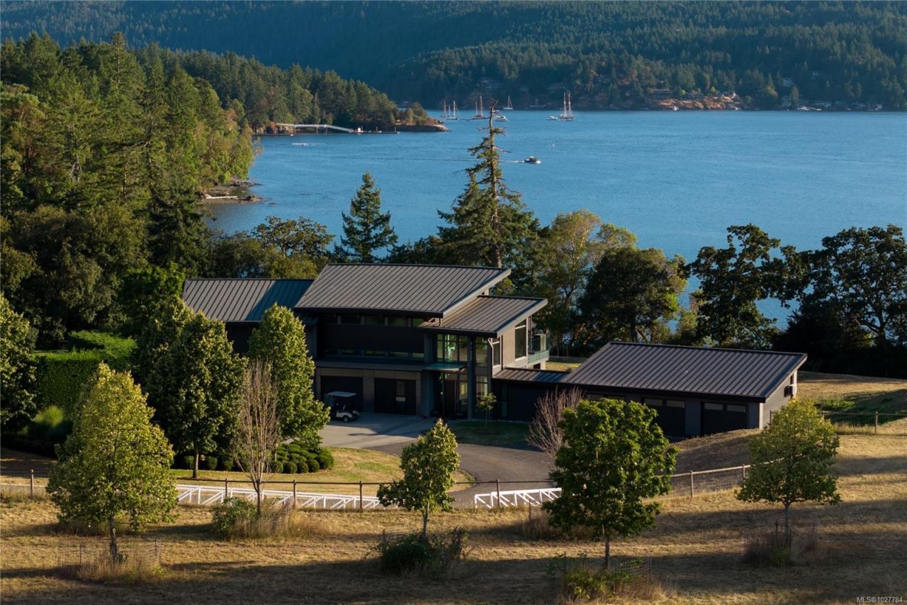 Roundstone Estate ? A luxury equestrian property by the Sea. Set on nearly 14 acres, including 236 feet of pristine waterfront in Central Saanich, Southern Vancouver Island, this rare offering blends modern architecture with pastoral beauty. The re-imagined 2010 residence showcases steel beams, cedar cladding, Loewen glass, soaring ceilings, and a chef's kitchen with Wolf, Sub-Zero, and Miele appliances. Comfort is assured with radiant in-floor heating, five-zone cooling, and backup generator. Equestrian facilities include a 72' x 36' stable with six stalls, heated tack rooms, wash bay, riding ring, and multiple fenced paddocks and pastures....read more