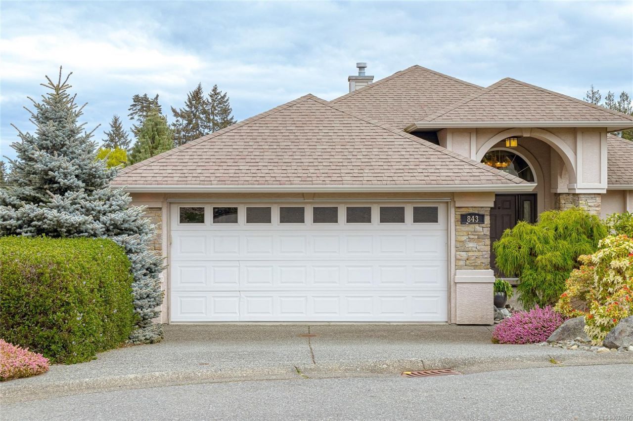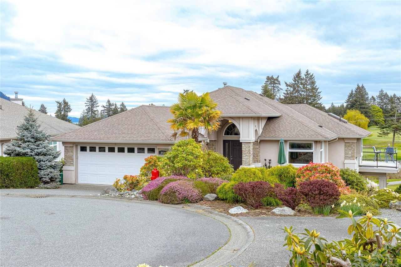 Welcome to 843 Country Club Dr in the sought-after 55+ gated community of Arbutus Ridge. Enjoy resort-style living with golf, tennis, pool, clubhouse, fitness center, and 24-hour security, just a short drive to Victoria and Nanaimo. This beautifully maintained 2-bed, 3-bath home offers over 2,800sq ft of quality craftsmanship and bright, open-concept main-level living. Expansive windows and soaring 11-foot ceilings on the main level showcase panoramic golf course views extending to Salt Spring Island. The living, dining, and kitchen areas flow onto a wraparound deck with glass railings. The kitchen features granite countertops, a tiered island,...read more