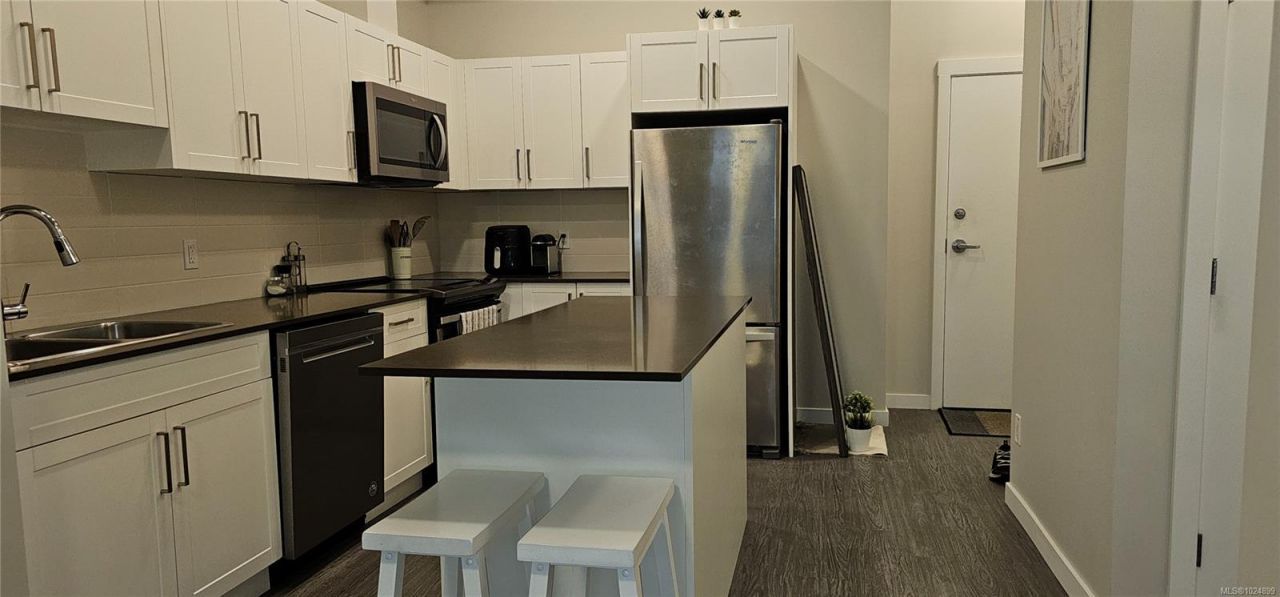 Large, affordable one-bedroom, one-bathroom condo in the heart of downtown Langford. This well-designed home features stylish vinyl flooring and convenient in-suite laundry. The spacious kitchen offers a generous island, stainless steel appliances, soft-close cabinetry, and quartz countertops?perfect for everyday living and entertaining. Pet-friendly with approval for up to two medium-sized dogs. Additional highlights include a dedicated parking stall, visitor parking, a shared courtyard, and secure bike storage. Ideally located just steps from the newly opened UVic campus, this condo provides easy access to downtown Langford's shops, restaurants,...read more