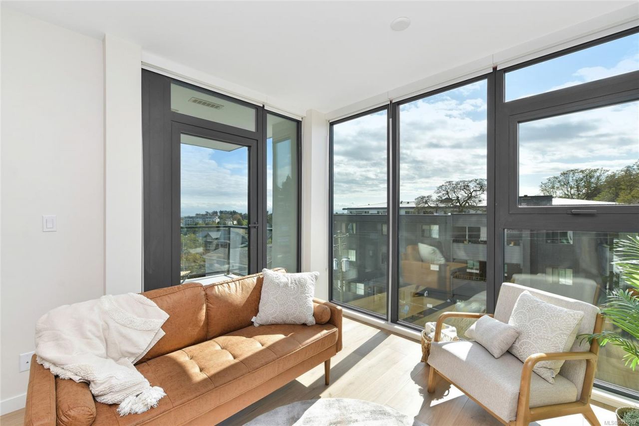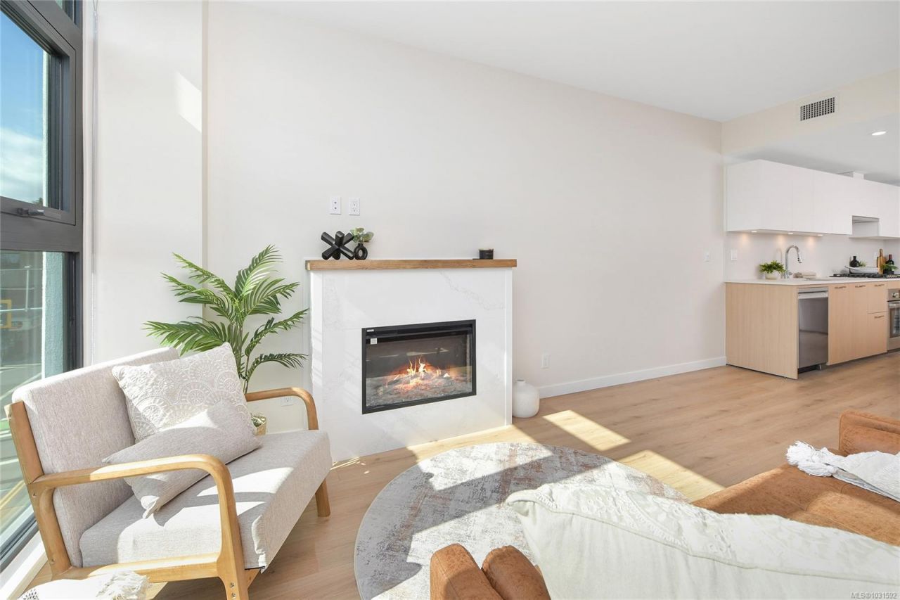 Welcome to Pacific House in the heart of Esquimalt. This brand new 2 bed,1 bath +den pet-friendly home offers bright,well-designed living w/ floor-to-ceiling windows & unobstructed SW ocean views. The open-concept layout creates seamless flow between the kitchen & living area, complete w/ an electric fireplace. The kitchen features Fisher Paykel & Bosch appliances, including a 5-burner gas cooktop, quartz countertops that wrap the backsplash,& ample counter space. Primary bed includes a walk-in closet.The bathroom features heated floors,a rain & handheld shower, & custom medicine cabinet. 2nd bedroom & versatile den offer flexibility for...read more