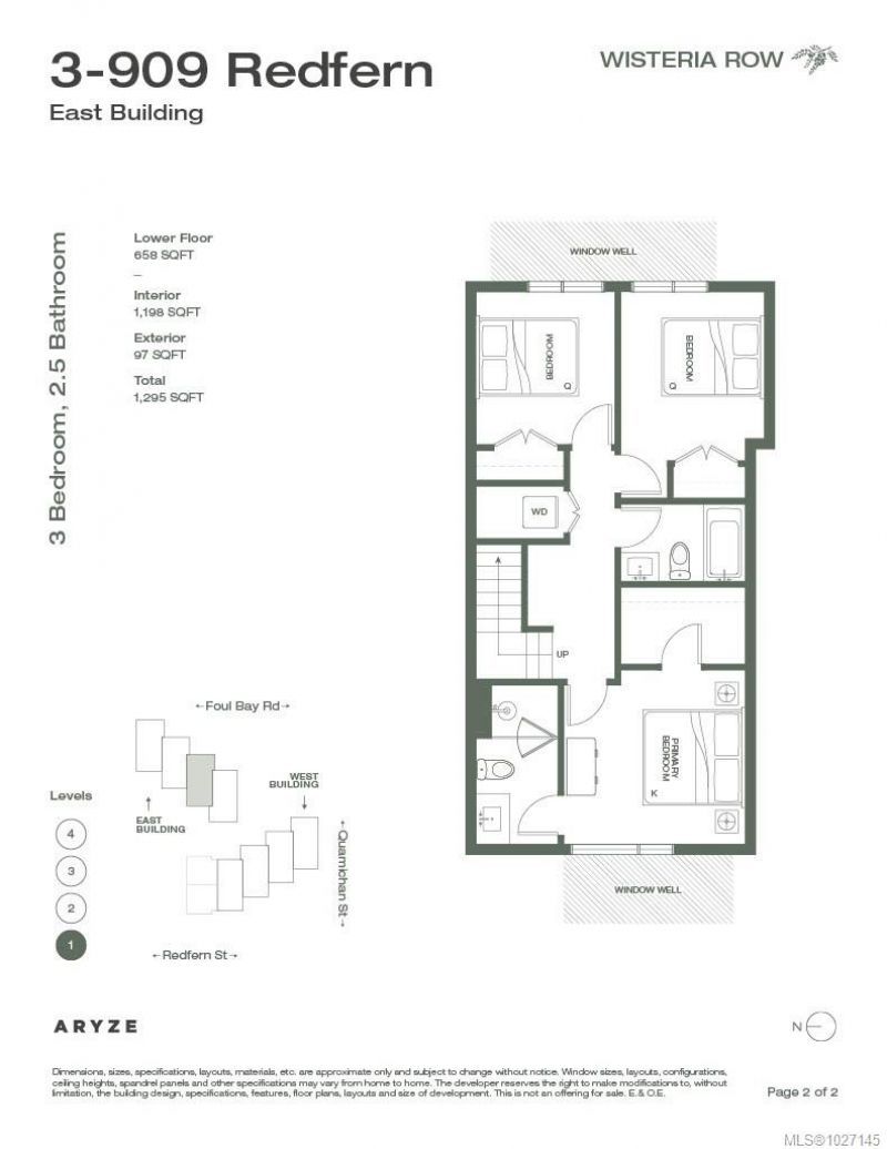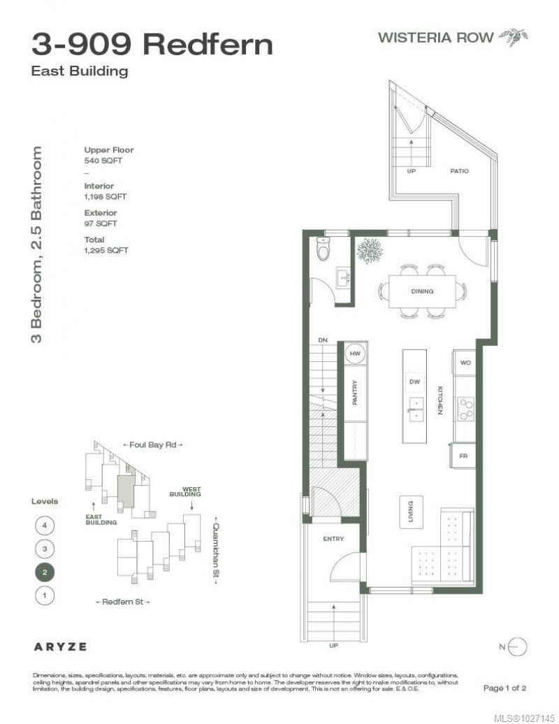 onstruction is now complete at Wisteria Row, Aryze Developments newest residential townhome community. Located on the border of Oak Bay and East Fairfield, this 3 bed, 2.5 bath home includes a Fulgor Milano appliance package, custom designed cabinetry, oversized windows and hardwood flooring throughout. The ground oriented front porch encourages thoughtful interface with the community, while still allowing for privacy and delineation from passersby's. This home offers ground entry living with bedrooms on the lower level. 3-909 Redfern is part of our car-free collection and as such offers a complimentary membership to the onsite Modo Car Share...read more